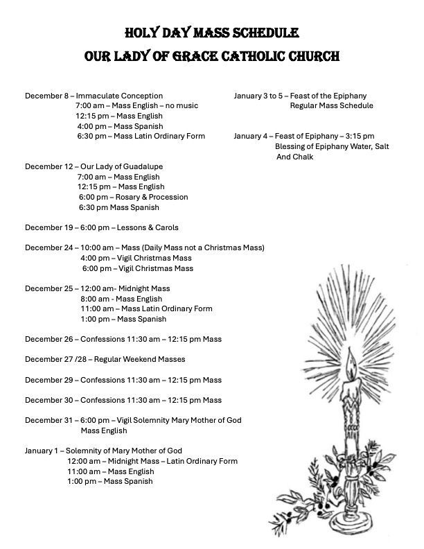 Our Lady of Grace and the Diocese of Charlotte are committed to providing a safe environment for every and especially for those who are most vulnerable. All volunteers must complete a background check and training. For more information please visit:
